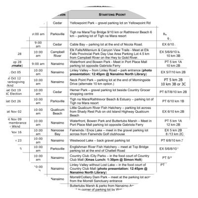 OUR NEW FALL 2025 WALK SCHEDULE IS ATTACHED. EFFECTIVE SEPT 1ST WALKS BEGIN AT 9:30 AM UNLESS LOCATED OUTSIDE THE NANAIMO REGION. PLEASE CHECK THE SCHEDULE. WALK REGISTRATION BEGINS AT 9:15 AM SHARP..